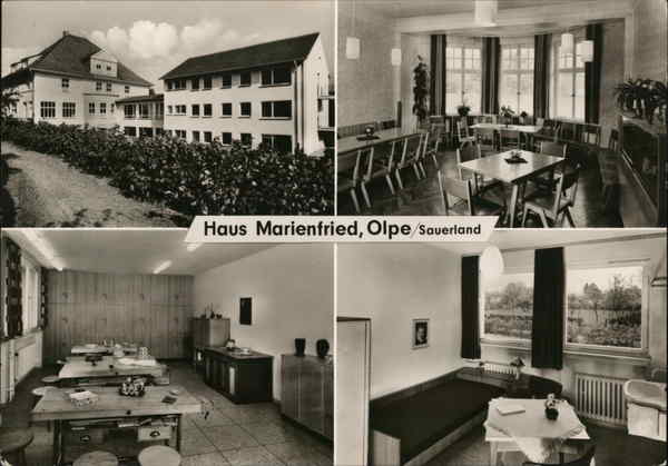 Front: SH Haus Marienfried, Olpe/Sauerland Back: HAUS MARIENFRIED 5779 Olpe, Kr. Meschede Bahnstation und Ruf Freienohl 324 Nr. 1540 90 Jahre Verlag Jos. Grobbel, Fredeburg (Sauerland) Gesetzl. gesch. Agfa 2p EINE Grobbel KARTE Echte Fotografie