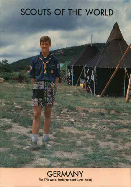 Front: SCOUTS OF THE WORLD (4) EKK UZIA The 17th World Jamboree (Mount Sorak Korea) Back: 우편 엽서 보내는 사람 (From) 받는 사람 (To) 우표 ㅁ