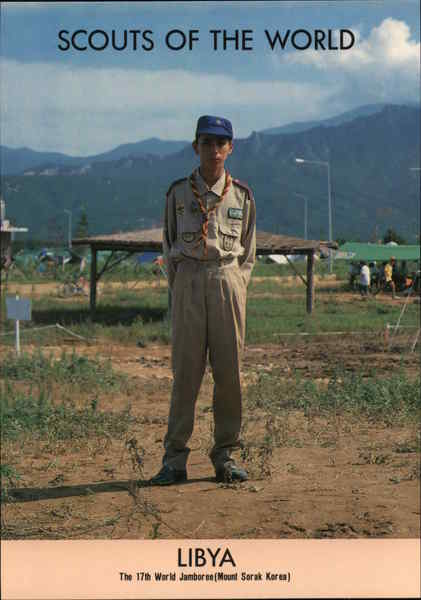 Front: SCOUTS OF THE WORLD LIBYA The 17th World Jamboree (Mount Sorak Korea) Back: 우편엽서 보내는 사람 (From) ‒‒‒‒‒‒‒ 받는 사람 (To) 우표