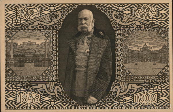 Front: ill BERD 1848 1908 DERANCISCUSJOSEPH US DO GOIMPAUST::R नगमयन्दी BOH GAL TCO :PREX HUNG Back: ВАНЕ КОН JUBILÄUMS- : KORRESPONDENZ-SE KARTE SO KAS FICHE: 15 HELLER