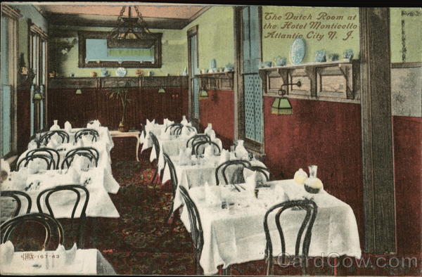 Front: 167-43 The Dutch Room at the Hotel Monticello Atlantic City N. J. an Back: Canada Cuba Mexico, Hawaii Philippines Porto Rico 2 Cents