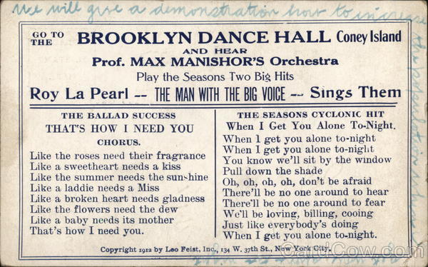 Copyright 1912 by Leo Feist, Inc., 134 W. 37th St., New York City.