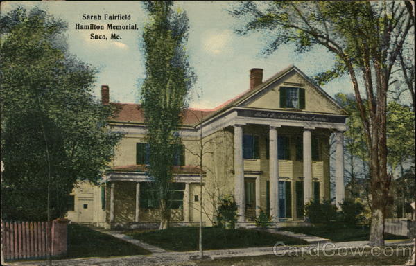 Front: Sarah Fairfield Hamilton Memorial, Saco, Me. Sarah Fairfield Hamilton Memorial. Back: проми call again cure mecan AGOMA SOCTI6M AM 1913 NE 7 Grecuft me 1. Boy 962 U.S.POSTAG Francis P. Conard, спа BAYI88 13 TS Sierra Madres Calif.