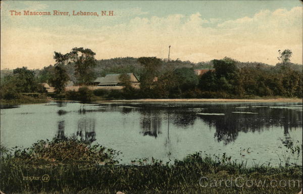 Front: The Mascoma River, Lebanon, N.H. 205,715 UV Back: Published by Thomson & Thomson, Boston, Mass. JAN SOUVENIR POST GARD 1912 A.M. N. H. Elin S.K. ad Happy dew Year 2- all. Hen Em J. Miller Es lelinton Paine Lebanen N. U₁ R. Fr. D.