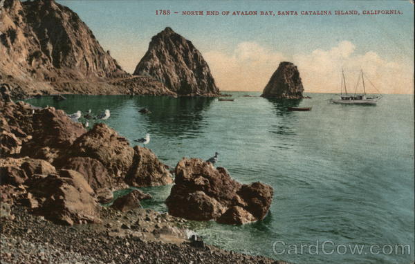 Front: 1788- NORTH END OF AVALON BAY, SANTA CATALINA ISLAND, CALIFORNIA. Back: MADE IN AMERICA BY EDW. X. MITCHELL AT SAN FRANCISCO, ONLY