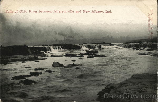 Front: Falls of Ohio River between Jeffersonville and New Albany, Ind. Jeffersonville, Ind Pub. by F. A. Maso Back: THIS SPACE MAY BE USED FOR WRITING GREAT BRITAIN FOREIGN: TWO CENTS.
