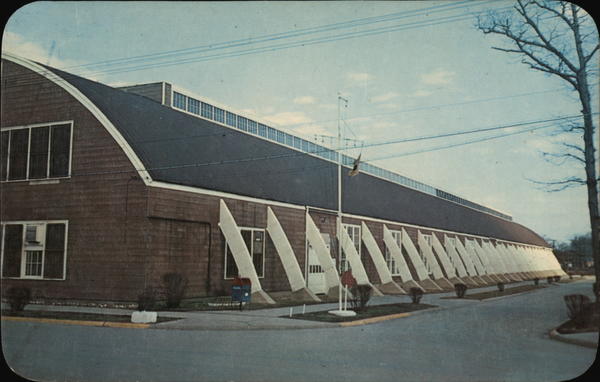 Drill Hall, 350 ft. long, 91 ft. wide at U. S. Naval Training Center, Great Lakes, Illinois. 50396-B Dexter Color New York, Inc., 274 Madison Ave., N.Y.C. 10016 GJ.. HERE