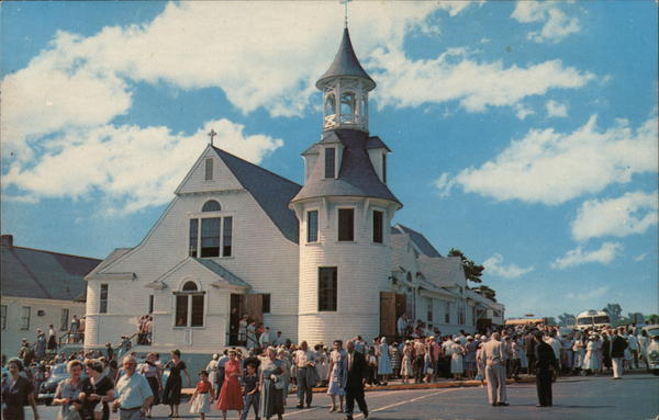 St. Margaret Church Old Orchard Beach, Maine "Lusterchrome" REG. U.S. PAT. OFF. MADE ONLY BY TICHNOR BROS., INC., BOSTON 15, MASS. K-2983