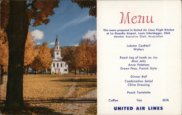 This menu prepared in United Air Lines Flight Kitchen