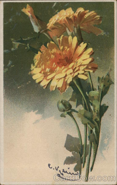Orange Flowers with Buds and Green Leaves