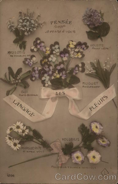 MYOSOTIS NE M'OUBLIEZ PAS 1206 GUI PORTE-BONHEUR LANGAGE MARGUERITE M'AIMEZ VOUS PENSÉE Cido JE PENSE A VOUS VOLUBILIS VIOLETTE Amour caché MUGUET AMOUR DISCRET FLEURS MON CŒUR S'ÉLANCE VERS VOUS L