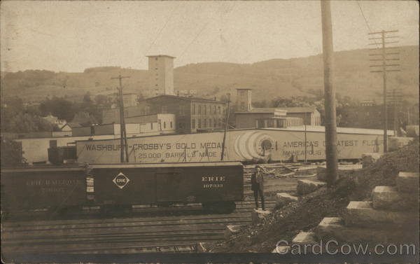 ERIE RAILROAD 112 ERIE YONEON TA ING CO WASHBUR-CROSBY'S GOLD MEDAI 25,000 BARRELS MADE IN ERIE 107333 SHBU CROSHY Cold POUS AMERICA'S GATEST FLOUR MINNEAPOLIS