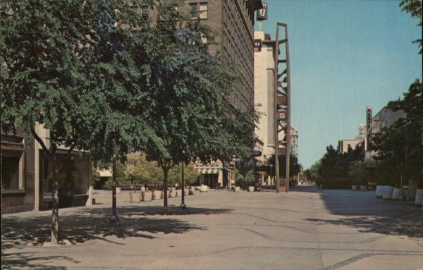63256-C FRESNO'S MALL Mariposa Clock Tower Ektachrome by Wm. P. Downing dp Pub. by FRESNO CARD MART, 1029 East Belmont, Fresno, California 93701 DEXTER PRESS, INC. WEST NYACK, NEW YORK JAN. 1973 JAN. 1973 HERE