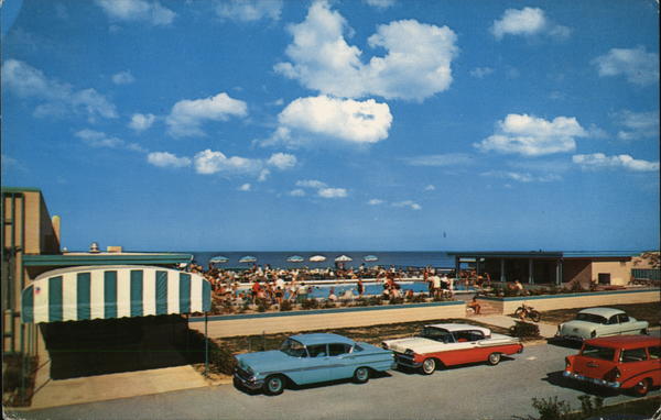 | A new interpretation of a resort hotel in an exclusive setting on the fashionable North End of Virginia Beach. Each room has a quiet elegance with its soft colors, complete conveniences and fine appointments. Private balcony or terrace, radio, Musak and TV. Spacious ground, Pool. Open all year. On the Ocean at 57th Street. |