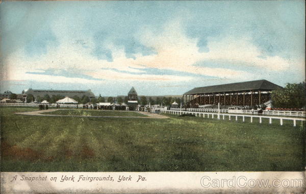 Front: se A Snapshot on York Fairgrounds, York Pa. TITT Back: Illustrated Postal Card Co. New-York-Leipzig. 20.-8 DOMESTIC AND Two CENTS