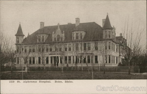 Front: 2239 St. Alphonsus Hospital. Boise, Idaho. Back: MOUND CITY POST CARD CO., PUBRS., ST. LOUIS, MO. CARTE POSTALE ---- POSTAL CARD Foreign