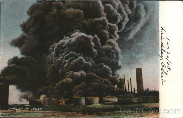 Front: BURNING OIL TANKS. haalan 12-2 zo/oF، Back: E 2397a The Rotograph Co., N. Y., City. (Germany.) 1.50 Eliza Several hundhed thousand galloris o oil were consumed, on this occasions. -