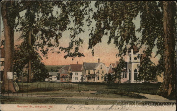 Front: 07 Meddow St., Bingham, Me. Fb. Day, Bachette Back: 8- Published in Germany by G. W. Morris, Portland, Maine. Expril Jorden Ellsworth Maimn. NC. ON ** 12 UNITED STATES OF AMERICA 17:06 FRANKLIN 1790 87337