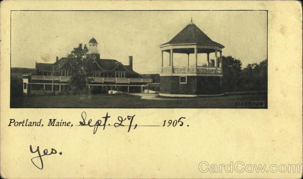 Front: Portland, Maine, yes. Sept. 27, 1905. RIVERTON Back: STLEED 27 1905 6- UNITED STATES OF ADFALME Postal Card ARE ALL Miss Julia Reed, Qunford Falls, Maine. GUIL FRANKLIN 1790 1706 ONE CENT