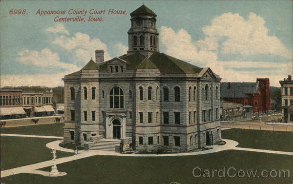 Front: 6998. Appanoose County Court House, Centerville, Iowa. 11 11 P7 Back: PH CƠ CHICK Pub. by George Kraft Co.. Centerville. la. pe A₂ STAMPHERE Two CENTS