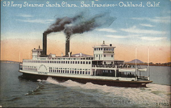 Front: S.P. Ferry Steamer Santa Clara. San Francisco - Oakland, Calif. III Sinds SANTA CLARA 00 S. SANTA CLARA ***2*OSCO S.F. 120 Back: 54 PACIFIC NOVELTY CO. SAN FRANCISCO & LOS ANGELES