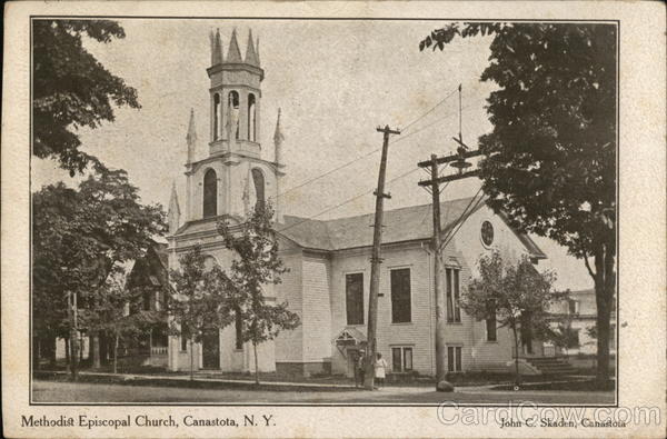 Front: Methodist Episcopal Church, Canastota, N. Y. ZV John C. Skaden, Canastota Back: Mäng write رالف беше ہیں ASTO JUL 6 1230PM 93e 0621NTEINVEL 9021 ETEL YELL Sath C HOSTES CALINT Ners. Harriet Sanders State It. If. Flain M.Y.