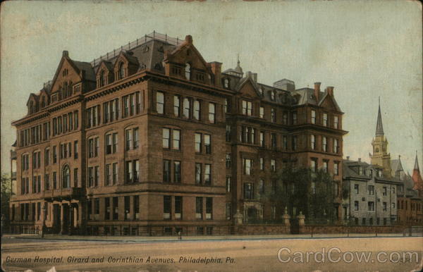 Front: 11 FJ 101 German Hospital, Girard and Corinthian Avenues, Philadelphia, Pa. 214538 Back: The Leighton & Valentine Co., N.Y. City, THROUGHOUT TRADE MARK. QUALITY FAMOUS THE WORLD CARD