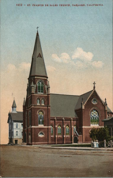 Front: 1852 - ST. FRANCIS DE SALES CHURCH, OAKLAND, CALIFORNIA. A Back: MADE IN AMERICA BY EDW. H. MITCHELL AT SAN FRANCISCO, THIS SPACE FOR ADDRESS ONLY
