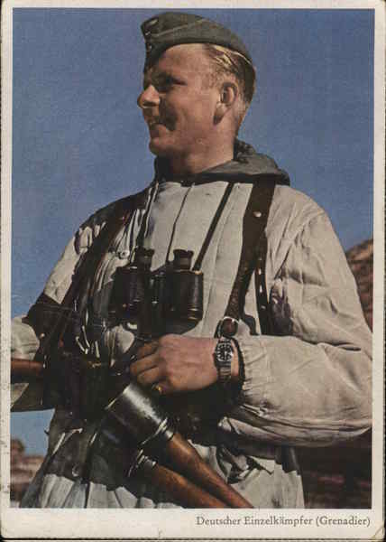 Front: Deutscher Einzelkämpfer (Grenadier) Back: REPRODUKTION UND OFFSETDRUCK CARL WERNER REICHENBACH 1. V Deutscher Einzelkämpfer (Grenadier) PK-Aufn. Kriegsber. Schürer