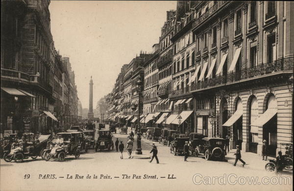 Front: 757 - S070x 19 PARIS. L La Rue de la Paix. The Pax Street, LL. Back: Carte Putie RESENTED AT A RAO waste- KUTespondance seragas olie On LEVY FILS & CHE PARIS.