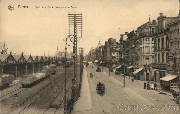 Front: Anvers Quai Van Dyck. Vue vers le Steen. SAAASDEBURE STADT MAGOEBURG frühgr- CAFE BULOW NORDYDELLY SCHURY AWBIOK 1STADT STAST MAG DEB URG Back: Ern. Thill, Bruxelles. No 7. ELS: 710 4- 1288