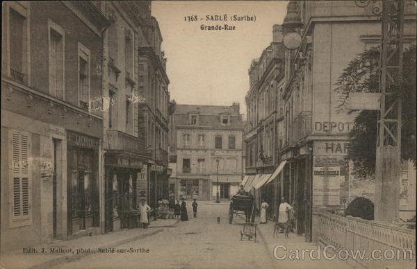 1368 - SABLE (Sarthe) Grande-Rue RALENTIR TOURNANES DANGEREX 457 DEPOT LACHOLN -HAR LO TREFLE 4 FEUIIL PECIAL SABLE TABAC COMICE AGRICOLE FETES PUBLIQUEST CD NES VL PE ES Edit. J. Malicot, phot., Sablé -sur-Sarthe in