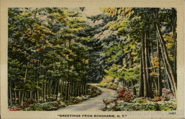 Front: 14 103 "GREETINGS FROM SCHOHARIE, N. Y." Back: "COLOURPICTURE" PUBLICATION, BOSTON 15, MASS., U. S. A.