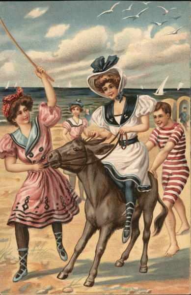 Girls at the beach with a horse