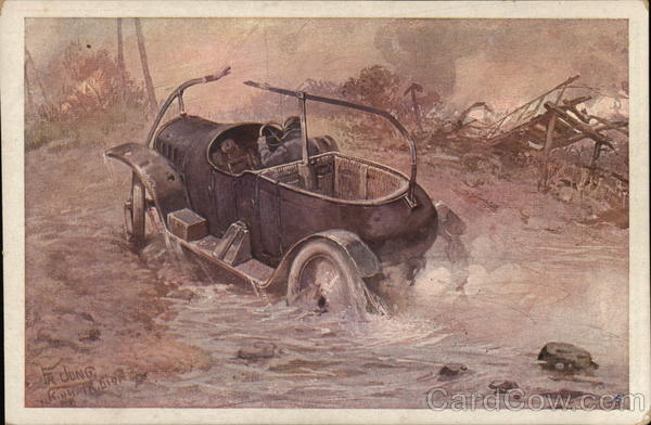 Automobilkorps fahrt während der noch andauernden Kämpfe als