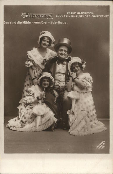 Front: 2 Das Dreimäderlhaus. Das sind die Mädeln vom Dreimäderlhaus. FRANZ GLAWATSCH- ANNY RAINER-ELSE LORD-VALLY ERNST. L. GUTMANN, WIEN, IX. 1916. Back: Postkartenerlag Brüder Kohn Wien