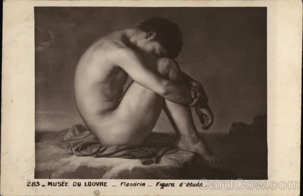 Front: 283 MUSÉE DU LOUVRE Flandrin Figure d'étude. --- Back: MUSEES LES PALAIS DU LOUVRE Anwalde COIT