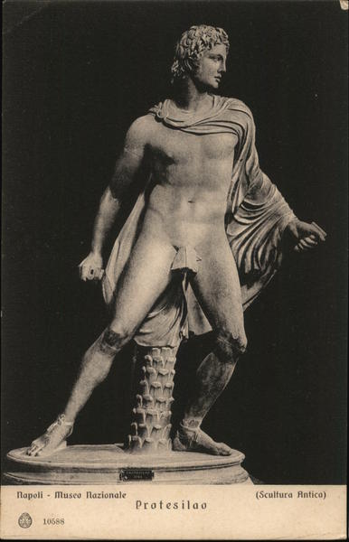 Front: PROTESILAO 40MA Napoli Museo Nazionale (Scultura Antica) Protesilao 10588 Back: 22 Edit. Bruguer & C., Como e Zürich Stab. eliografico. zno