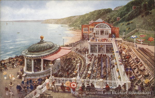 Front: BANDSTAND AND BALLROOM, SCARBOROUGH EN Back: VALENTINE'S "ART COLOUR”, POSTCARDS. COPYRIGHT. FROM AN ORIGINAL WATER COLOUR BY BRIAN GERALD. VALENTINE & SONS LTD., DUNDEE AND LONDON. 105 FORLD THROUGHOUT VALENTINE'S C.B. 37-2