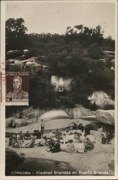 Front: REPUBLICA ARGENTINA 29 Gral. José DE SAN MARTIN CORDOBA - Piedras Grandes en Huerta Grande. Back: CARTAZIONE ITALIANA DENNTTO IN ITALY