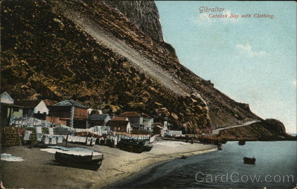 Front: Gibraltar. Catalan Bay with Clothing. Back: 1, d. THIS SPACE MAY BE USED FOR COMMUNICATION, 1 d. A. Benzaquen, Tanger. 74504