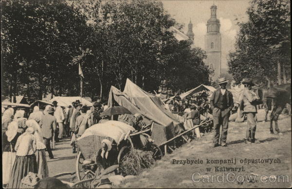 Front: Przybycie kompanij odpustowych w Kalwaryi. Back: Nákladem Rudolfa Pawelčaka we Frydku. - Naśladowanie zbronione. 783 : 06. Postkarte. Pocztówka. --- ol 8803