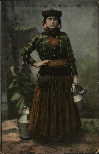 Front: Costumes de PortugalVendedeira de Leite Back: PORTUGAL BILHETE POSTAL-CARTE POSTALE Correspondencia Endereço