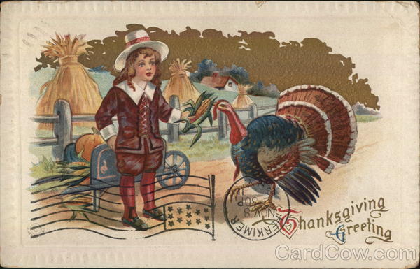 Front: 108 NOV-8 ER wid Shanksgiving Greeting Back: 12 № 1911 CA M.132. Hello told me yowe M Frank Heller gring to mite you they ори it hat Shwent got 226 king st Herkimer M.Y. matter. Sarah. LAUT TUTULEDEKHIT