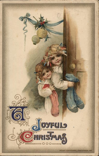 Front: JOYFUL CHRISTMAS DESIGN COPYRIGHTED JOHN WINSCH, 1911. Back: *** 68370 10000 Murry had th mich I fould see cough. han, you. Dond which DO THE ADDRESS TO BE WI ON THIS SIDE VRIFTEN رررررررر Marer Perry Notaling Reynolds And Onconta n.y.