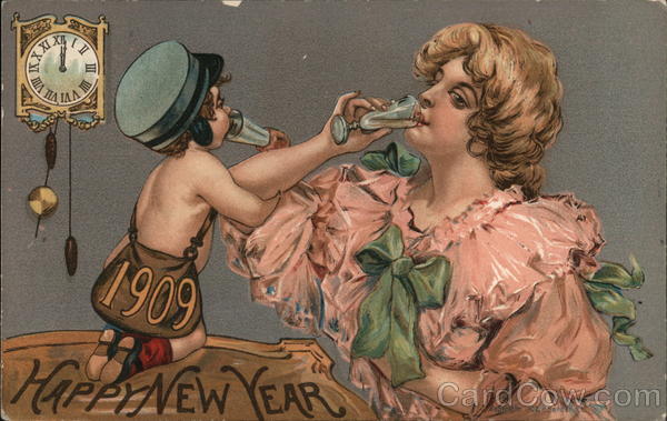 Front: XX XI X XII HIN LI HA IA A FATOU 1909 HAPPY NEW YEAR 17 20pycight 1907, P.Sander NY Back: Canada Cuba Mexico, Hawaii Philippines Porto Rico 2 Cents