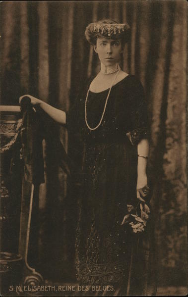 Front: S.M. ELISABETH, REINE DES BELGES. Cura Back: Propriété de l'édition V. G. Bruxelles. No. 107. Tous droits réservés. Cliché Boute, Bruxelles. 12 74635