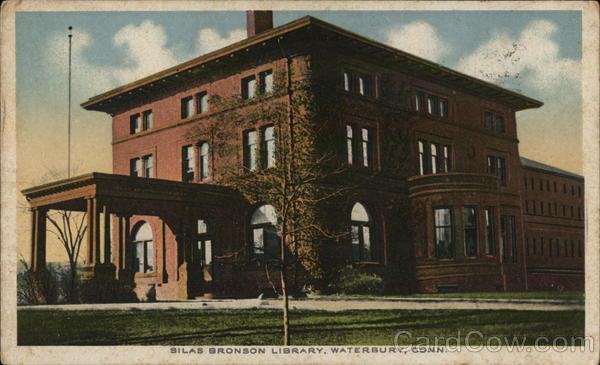Front: TT rr 11 SILAS BRONSON LIBRARY, WATERBURY, CONN. 111111 111 Back: 2640 PUBLISHED BY THE UNION NEWS COMPANY NEW YORK. CHIRO RBUR 10-30P Am haurie 1914 hann fine time! G&S NEW YORK Clyakth Miss Florence Lauren Siedep Street Bristol Conn
