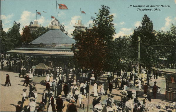 Front: TICKET BOOTS A Glimpse at Euclid Beach, Cleveland, Ohio. Back: PUBLISHED BY BRAUN POST CARD CO., CLEVELAND, OHIO. NO RIOR SUPE MESSAGE MAY BE WRITTEN ON THIS SIDE. COME AJ A-12662 and Island Possessions Cuba, Canada and For Foreign.