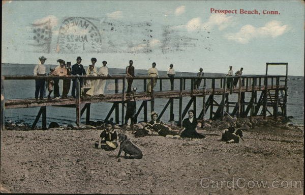 Front: COVAA SSQUA 4.44 Prospect Beach, Conn. Back: No. 519. Pub. by Danziger & Berman. New Haven, Conn. 783 محمد in EST HAJEN AUG22 1-45P 1913 Post fam Mr. Dougly son freed East Lyme Conn. حبه